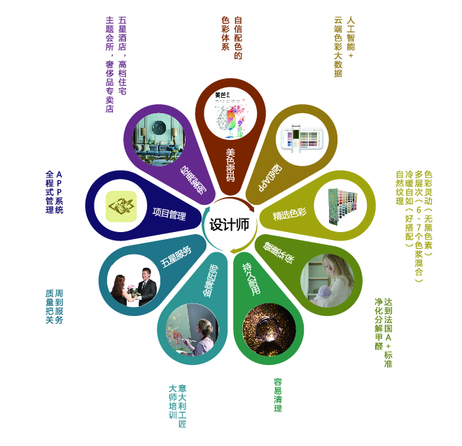 由国际知名主题乐园的各大艺术家培训出来的工匠师,爱涂妆艺术涂料讲究纯手工艺术,由工匠师精雕细琢的为你打造一面美丽的墙面。