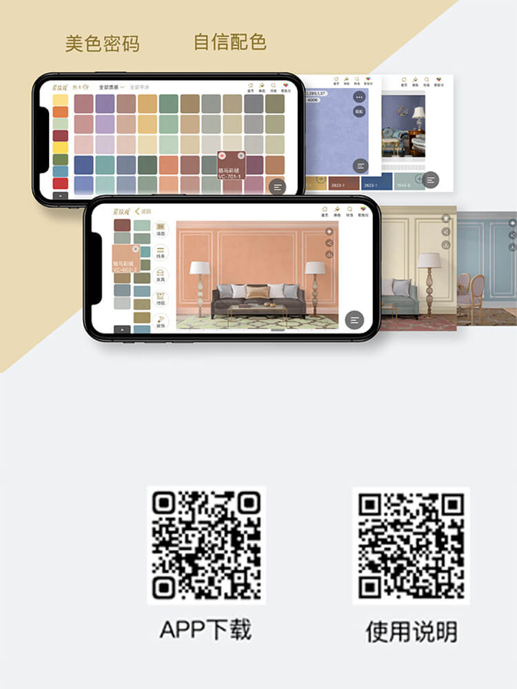 爱涂妆通过自行研发的美色密码APP工具和AI人工智能,能更有效的帮助设计师迅速、自信的做出室内设计和室内色彩搭配。