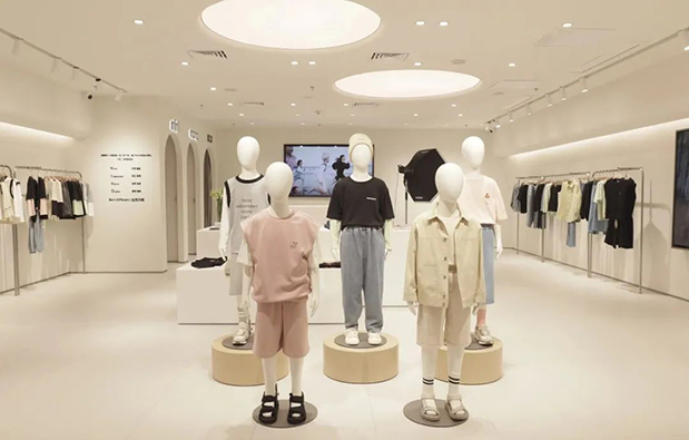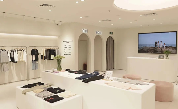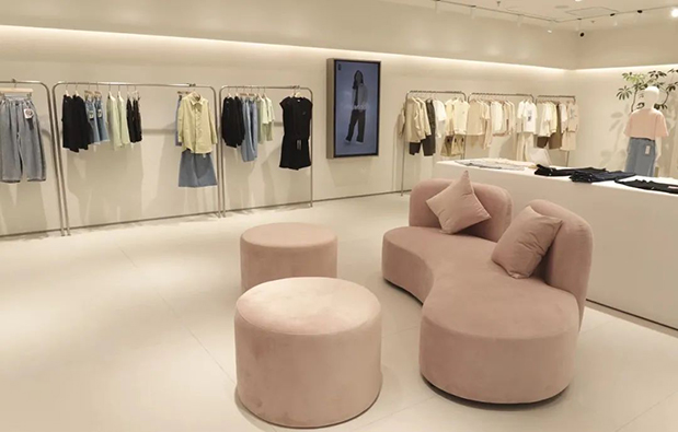 旗舰店所有墙面采用的爱涂妆砂岩定制色系,环保材质,看似白色其实是有
