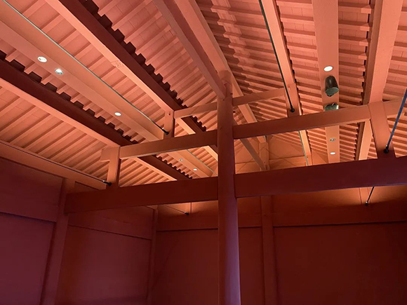 现代设计的玻璃叠墅与传奇古建红庙巧妙融合,层层延伸天地的观景露