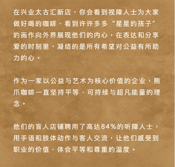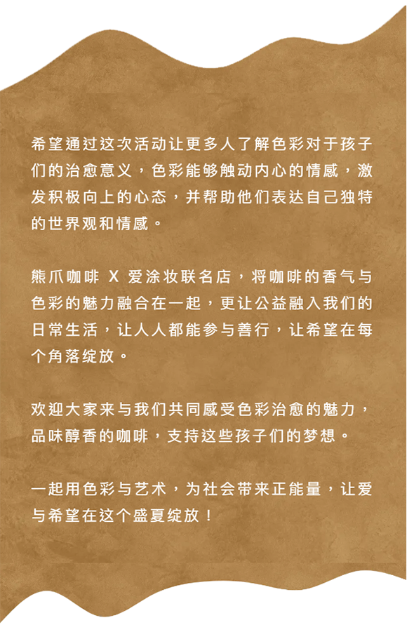 这次联名店的开业,熊爪咖啡携手爱涂妆,进一步引起社会对弱势