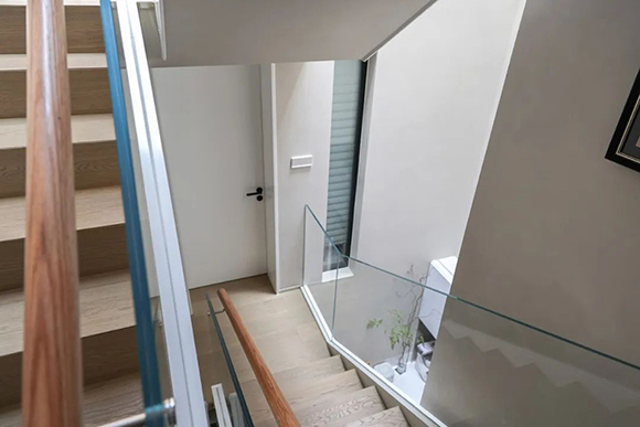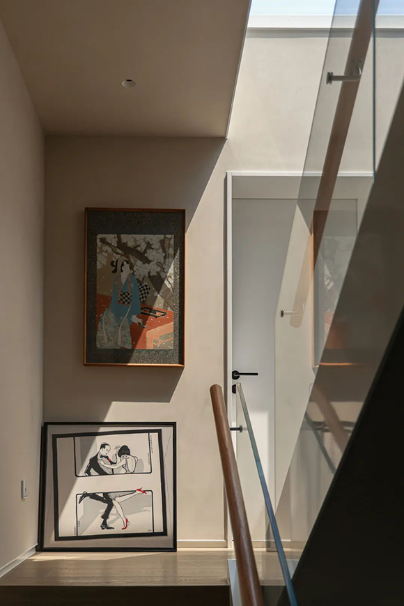 穿过通透的楼梯间,向上走去,充满艺术感的画作随处可见。