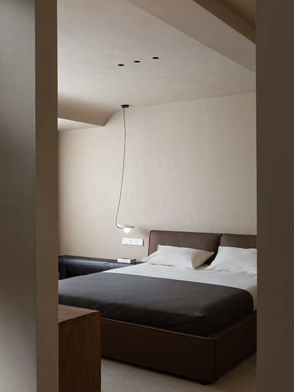 艺术气息,像一幅画卷,低声诉说这卧室中的秘密。不同肌理在不同灯光