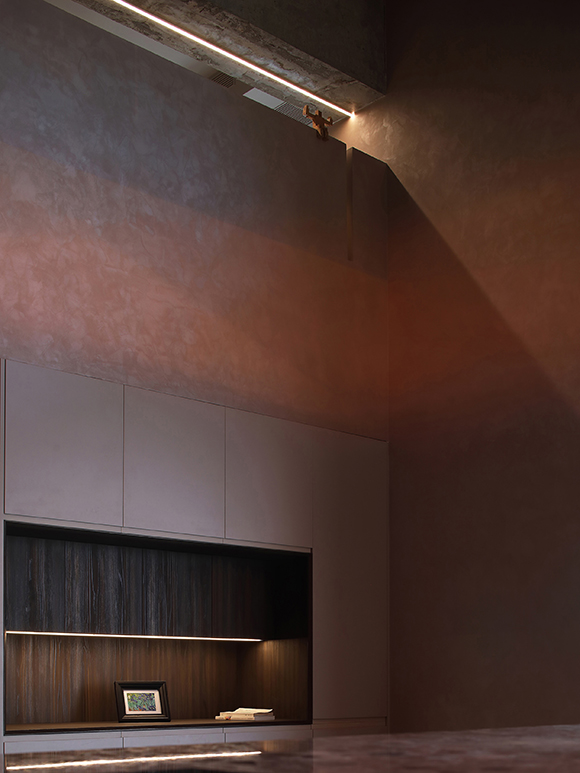 细腻珠光粉,让墙面在各种光线的折射下,都能将光线温柔地漫射开来,