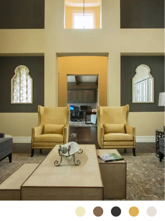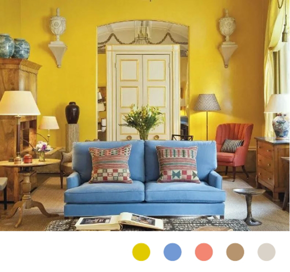 暖灰作为一种低饱和度的色彩,与云金龙相搭,能够营造出温馨而舒适的