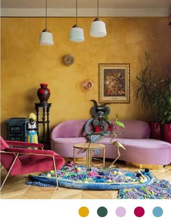 当用作暖灰色、深蓝色、李子色或棕色的强调色时,它会将能量转移到那