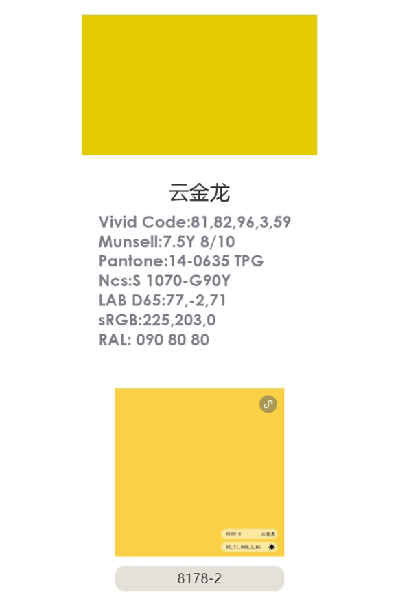 云金龙是一种富有包容性的颜色,对各类材质、色彩和应用场景具有极强