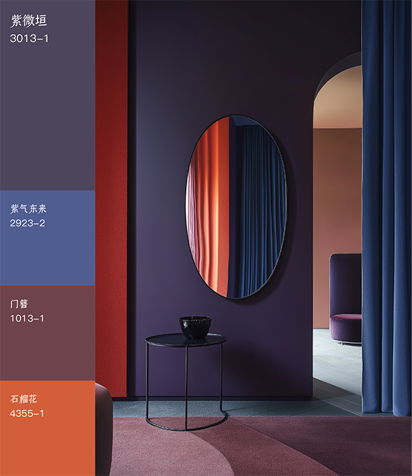 紫蓝相间的装饰营造出深邃静谧的空间效果
