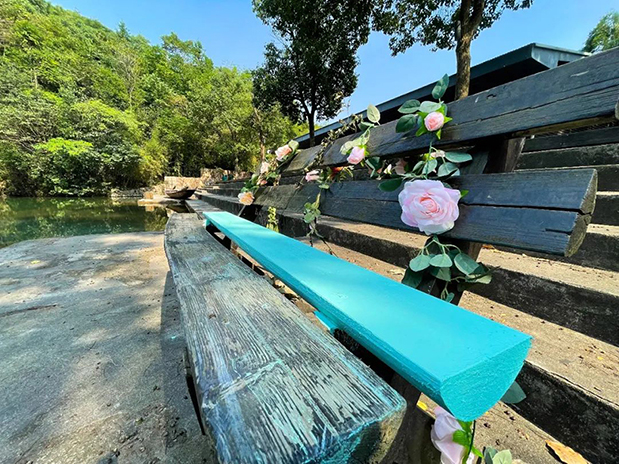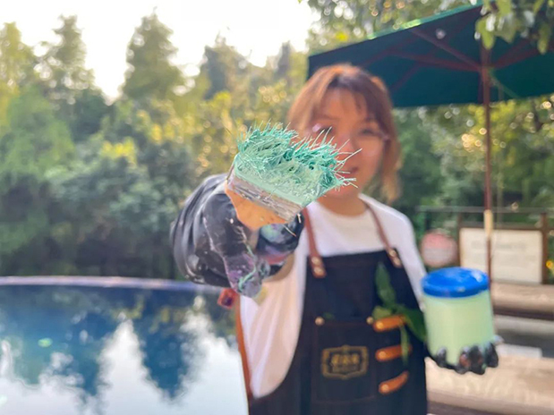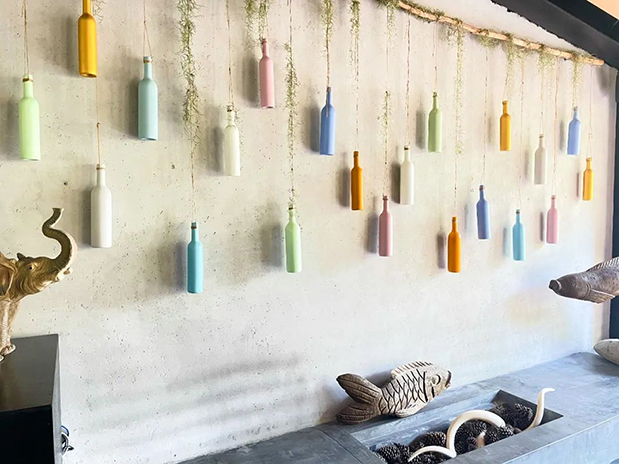 于森林里,“爱”艺术家们将原本要“废弃”的瓶瓶罐罐重新利用,通过色彩手艺,