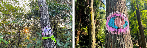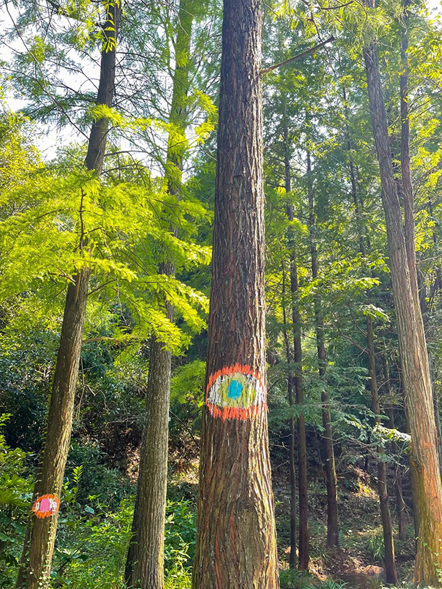 在树木画上一双双代表着心灵之窗的眼睛,通过以眼对视,感知、交流和