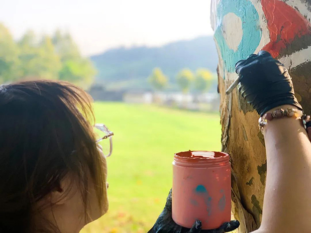 就这样,爱涂妆的“爱”艺术家们与裸心谷的伙伴共同完成了一幅“大型”作品,