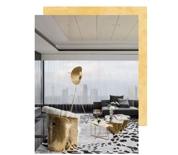 用金色“妆”点家居,当然也不能流于俗套。对 “金”色的色调和饱和度
