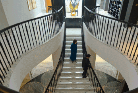 别墅中最令人有印象印象深刻的是,采用了直跑式的楼梯,整体形态呈天
