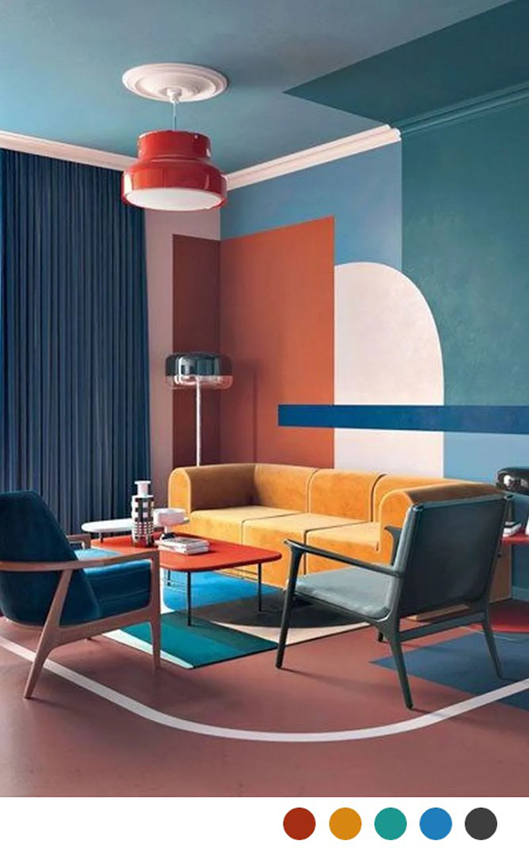 室内空间多彩的趋势明显,令人舒适安心的自然色系、