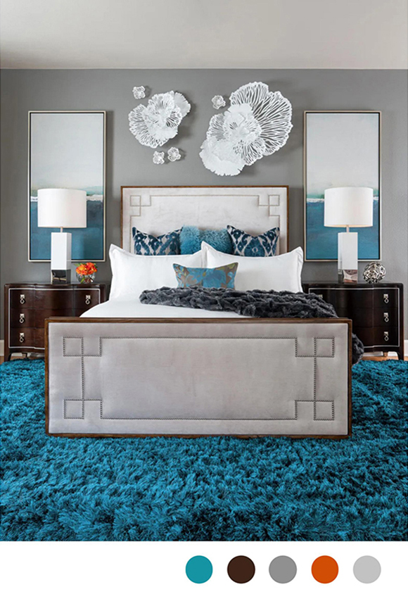 的感觉。在家居搭配中,可以选择灰色的墙面、家具或地板,与碧蓝色的