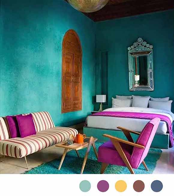 绿色与碧蓝色相搭配,可以让家居空间充满自然气息和舒心感。可以在碧