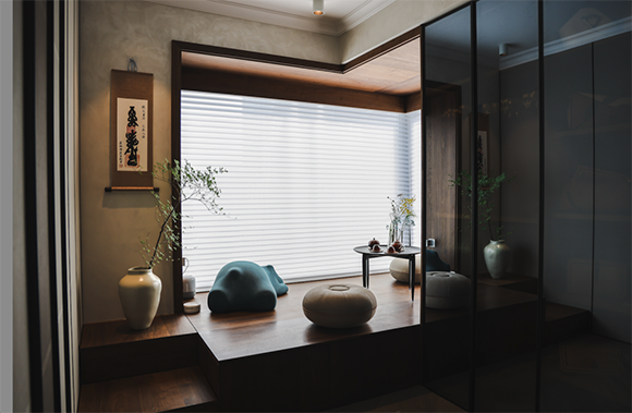 穿过走廊尽头是一个衣帽间,这个空间里还隐藏着一个很禅意的小茶室,