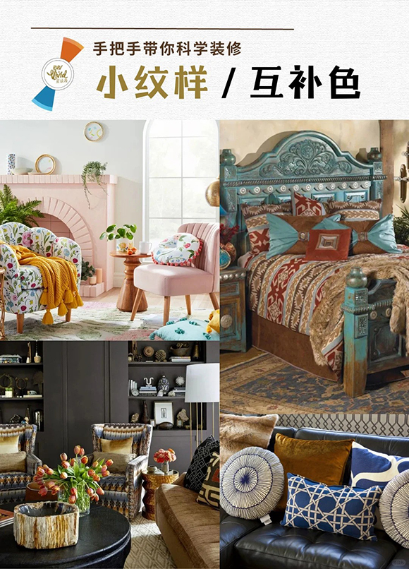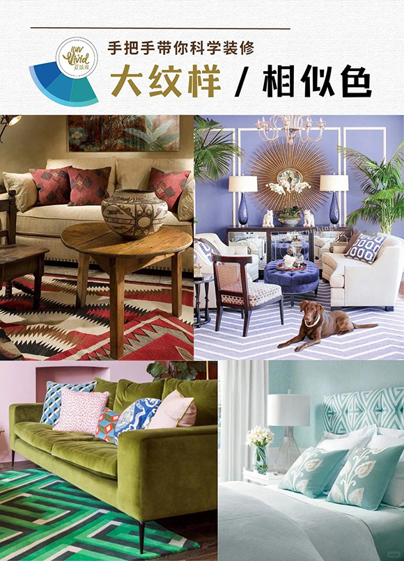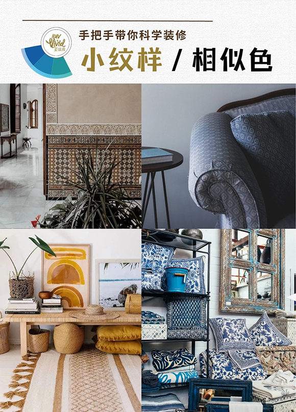 不同的纹样和色彩搭配会带出不一样的视觉效果。相似色柔和,