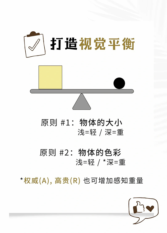 视觉平衡⚖️的原则其实很简单(参考图二 — 视觉重量平衡图),只要处理好: 物体的大小