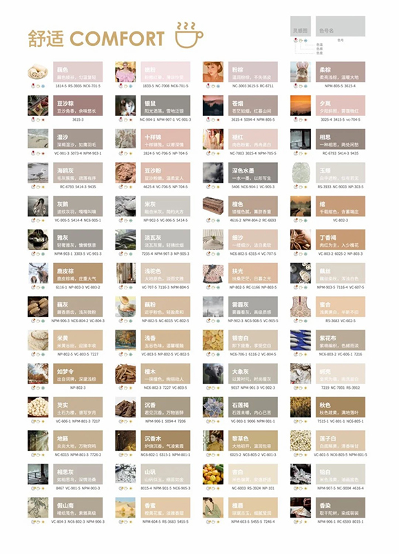 ☕️舒适(Comfort) :平静,柔软,细腻,冷静