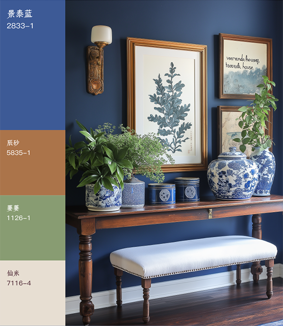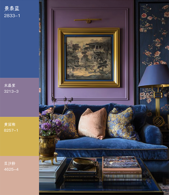 景泰蓝色装饰盘是点亮紫色墙面的完美选择